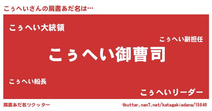 | ヒーロー風カッコイイあだ名 | 『スーパーコゥヘイ』『銀牙騎士コゥ』 |