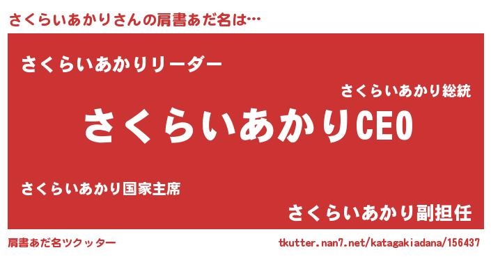 | 恥ずかしいあだ名 | 『プリティーさくらいあかり』『さくちん』 |