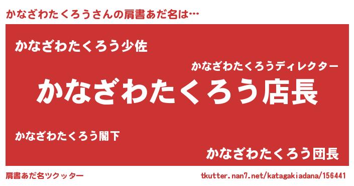 | 男性向けラノベタイトル風あだ名 | 『カナザワタクロウアートオンライン』 |