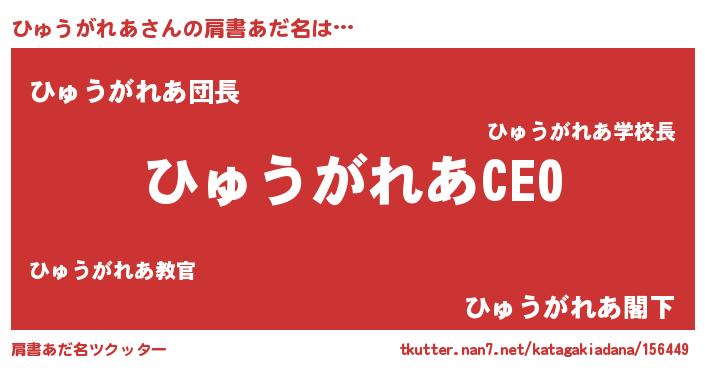 | ポケモン風あだ名 | 『ヒュチュウ』『ヒヒュウガレア』 |