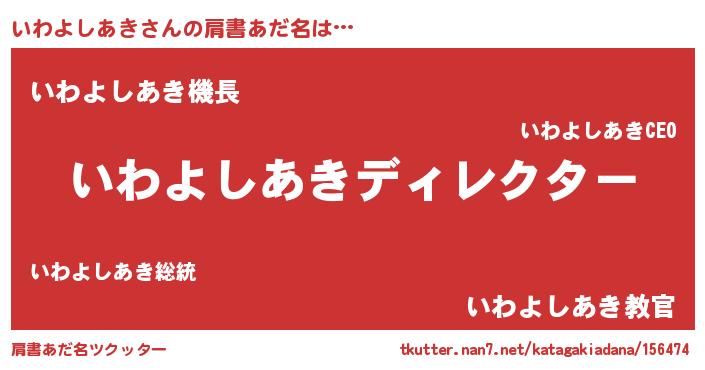 | 意味不明あだ名 | 『住所不定無職いわよしあき(62歳)』 |