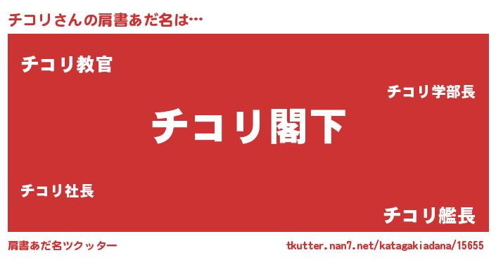 | ヒーロー風カッコイイあだ名 | 『究極戦士チコリ』『仮面チコダー』 |