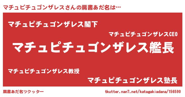 | 意味不明あだ名 | 『自称マチュピチュゴンザレス』 |