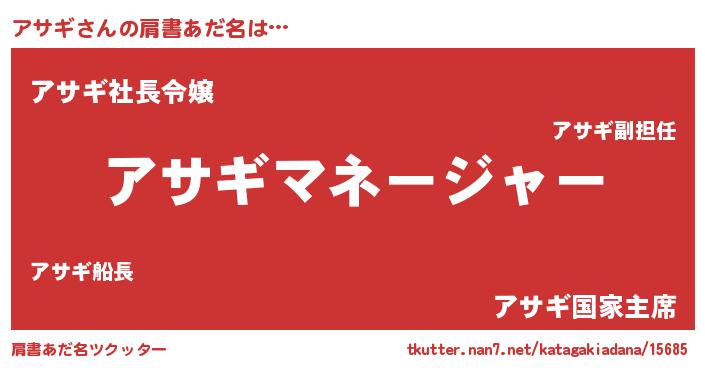 | ヒーロー風カッコイイあだ名 | 『スーパーアサギ』『ウルトラアサギマン』 |
