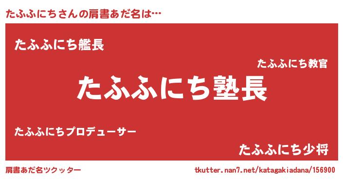 | 意味不明あだ名 | 『とにかく怪しいたふふにち』 |