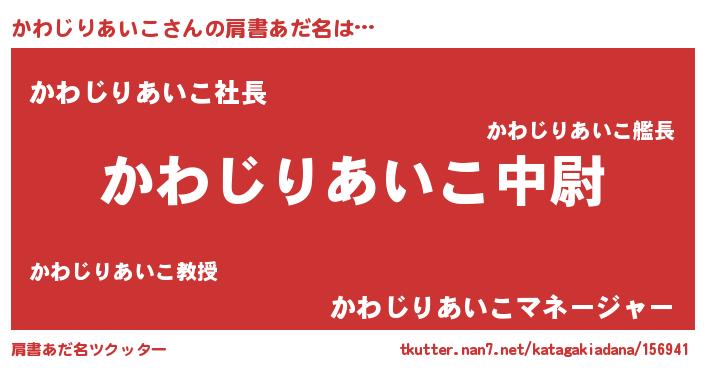 | ヒーロー風カッコイイあだ名 | 『スーパーカワジリアイコ』 |