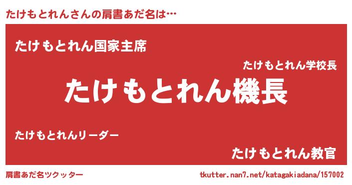 | 欧米人風あだ名 | 『たけもとれん・ステッグマイヤー』 |