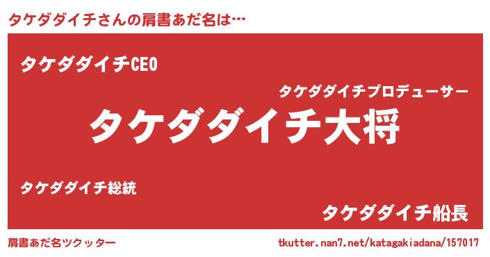 | ヒーロー風カッコイイあだ名 | 『スーパータケダダイチ』『仮面タケダー』 |