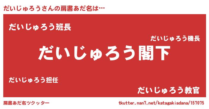 | 恥ずかしいあだ名 | 『ダイジュロウデラックス』『だいちん』 |