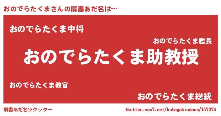 | 男性向けラノベタイトル風あだ名 | 『ノーゲーム・ノーオノデラタクマ』 |