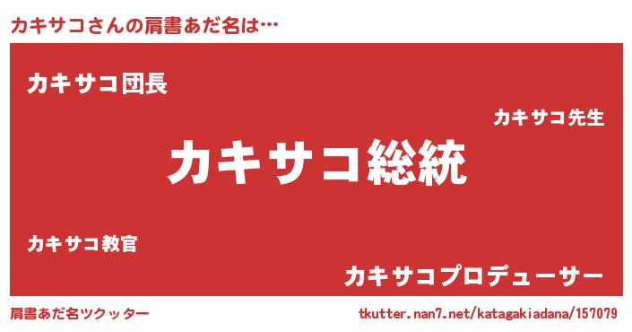 | 男性向けラノベタイトル風あだ名 | 『Re:カキサコから始める異世界生活』 |