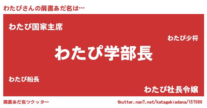 | ヒーロー風カッコイイあだ名 | 『天空の使者わたぴ』『スーパーワタピ』 |