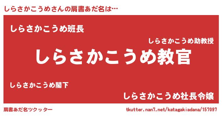 | 男性向けラノベタイトル風あだ名 | 『この素晴らしい世界にしらさかこうめを!』 |