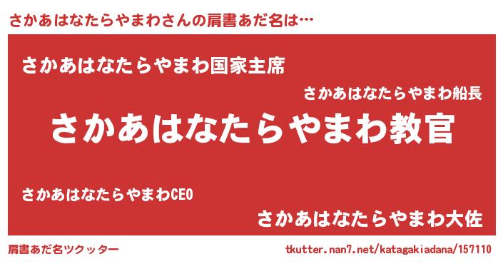 | 意味不明あだ名 | 『住所不定無職さかあはなたらやまわ(84歳)』 |