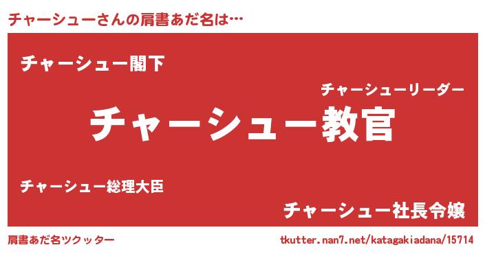 | 意味不明あだ名 | 『住所不定無職チャーシュー(56歳)』 |