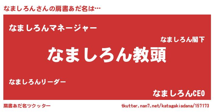 | 意味不明あだ名 | 『永久保存なましろん』『自称なましろん』 |