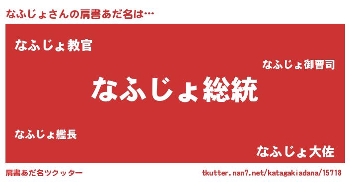 | 意味不明あだ名 | 『自称なふじょ』『めかぶ科なふじょ属』 |
