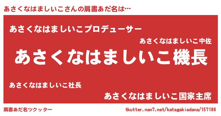 | 欧米人風あだ名 | 『あさくなはましいこ・ステッグマイヤー』 |