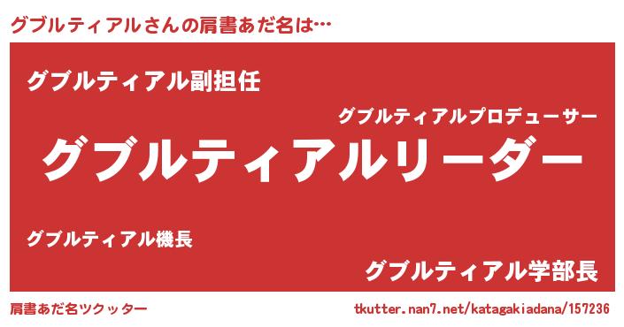 | 意味不明あだ名 | 『とにかく怪しいグブルティアル』 |