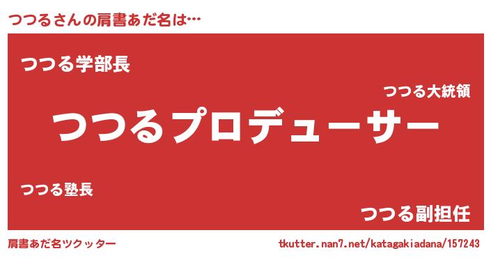 | ヒーロー風カッコイイあだ名 | 『慈愛の使者つつる』『ネオツツル』 |