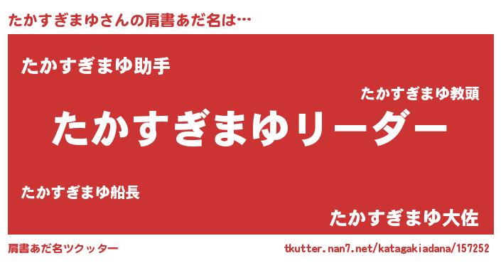 | 男性向けラノベタイトル風あだ名 | 『たかすぎまゆの嫁は女の子じゃないと思った?』 |