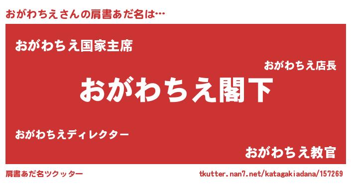 | 女子向けラノベタイトル風あだ名 | 『おがわちえなんてお断りですっ。』 |