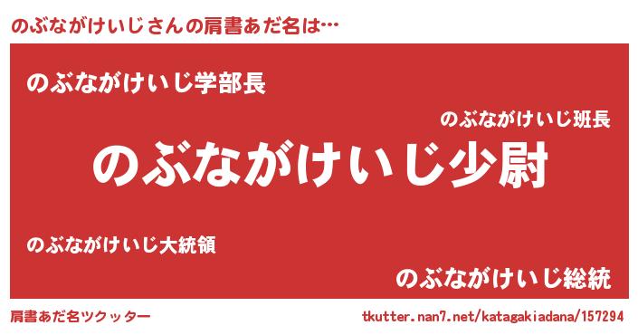 | 男性向けラノベタイトル風あだ名 | 『転生したらのぶながけいじだった件』 |