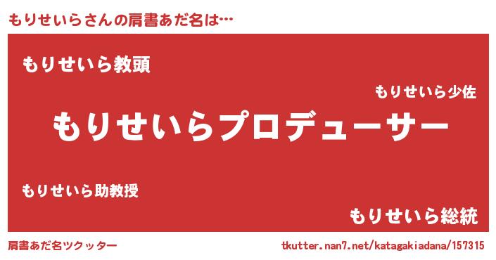 | 意味不明あだ名 | 『永久保存もりせいら』『自称もりせいら』 |