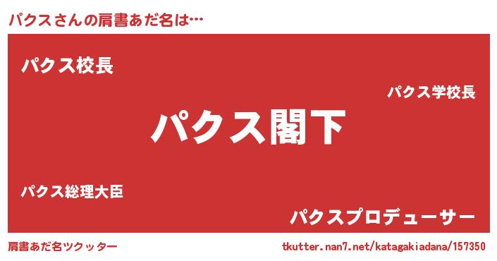| 男性向けラノベタイトル風あだ名 | 『Re:パクスから始める異世界生活』 |