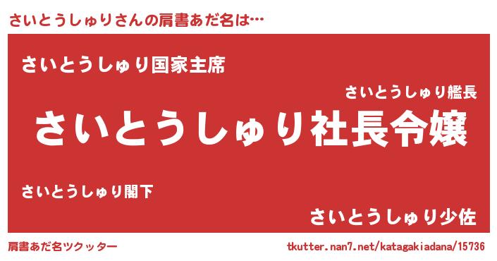 | ヒーロー風カッコイイあだ名 | 『スーパーサイトウシュリ』 |