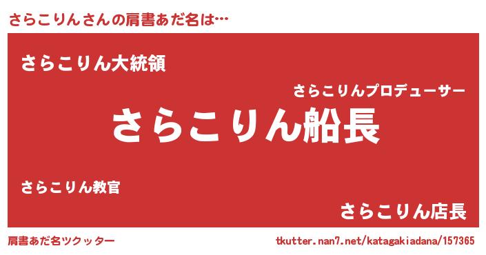 | 欧米人風あだ名 | 『さらこりん・ステッグマイヤー』 |