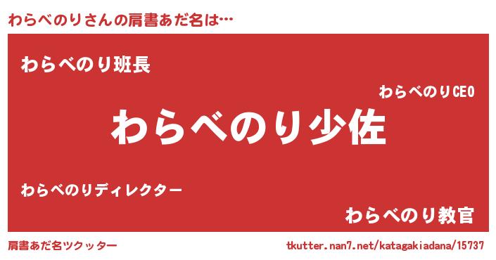 | 胡散臭い通販商品みたいなあだ名 | 『信頼と実績のサプリメント…その名も「わらべのり」』 |