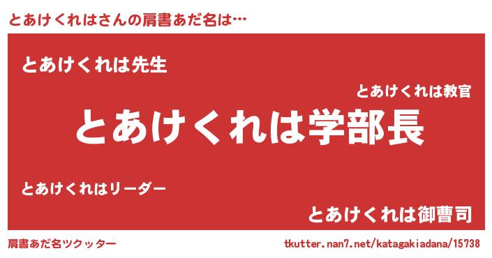 | ヘコむあだ名 | 『とあけくれは(遠い目)』『とあにー』 |