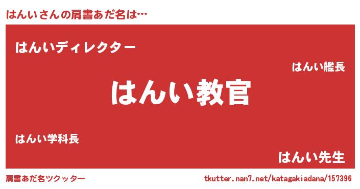 | 男性向けラノベタイトル風あだ名 | 『魔弾の王とはんい』『緋弾のハンイ』 |
