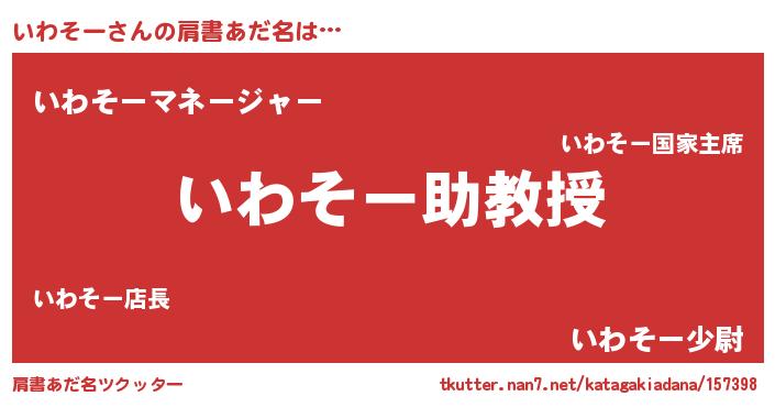 | 欧米人風あだ名 | 『ダニエルいわそー』『マイケルいわそー』 |