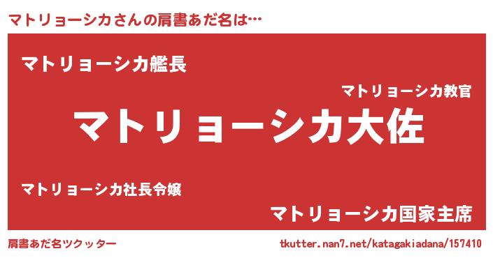 | 女子向けラノベタイトル風あだ名 | 『マトリョーシカの玉の輿計画!』 |
