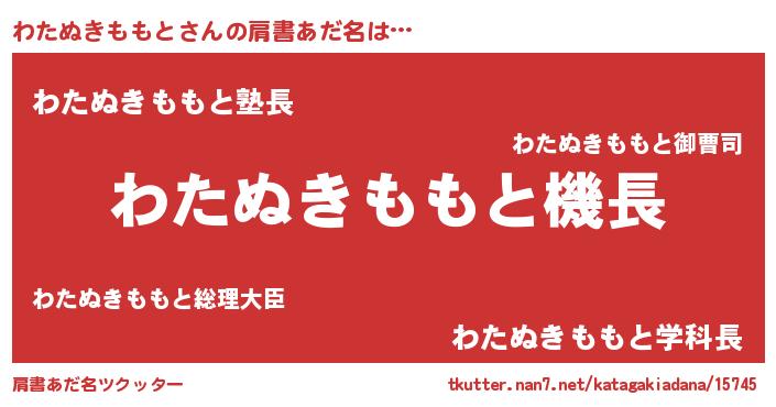 | 男性向けラノベタイトル風あだ名 | 『うちのわたぬきももとが世界を掌握している!』 |