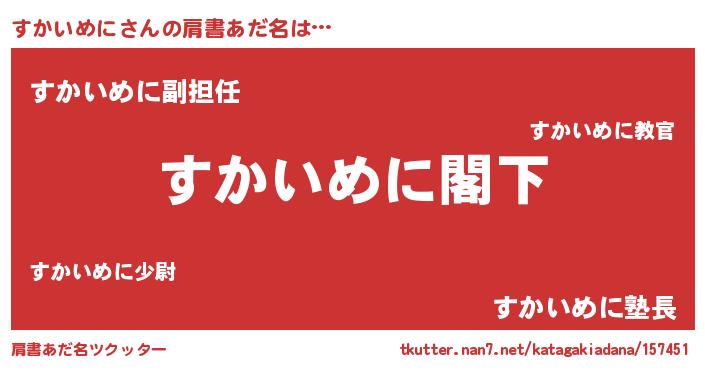 | 男性向けラノベタイトル風あだ名 | 『Re:すかいめにから始める異世界生活』 |