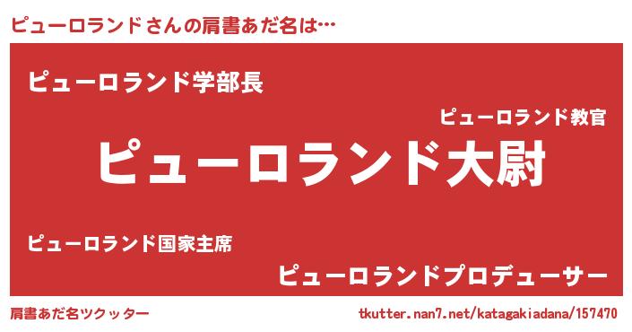 | 男性向けラノベタイトル風あだ名 | 『ピューロランドスレイヤー』 |