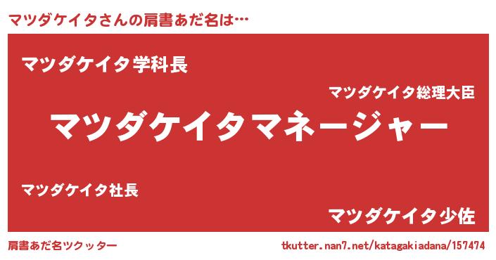 | 男性向けラノベタイトル風あだ名 | 『マツダケイタに滅ぼされるだけの簡単なお仕事です』 |