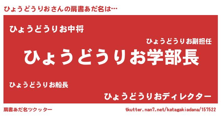| ヒーロー風カッコイイあだ名 | 『慈愛の使者ひょうどうりお』 |