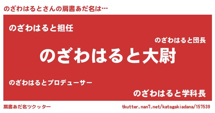 | ヘコむあだ名 | 『のざわはると(爆)』『のざっちょ』 |