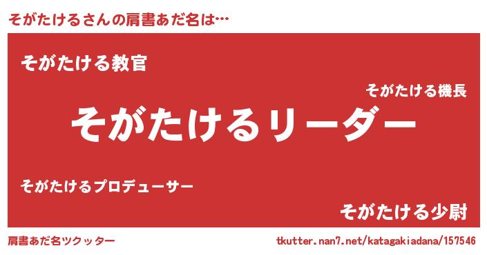 | 意味不明あだ名 | 『とにかく怪しいそがたける』 |