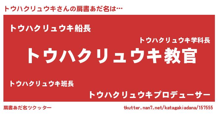 | 男性向けラノベタイトル風あだ名 | 『この素晴らしい世界にトウハクリュウキを!』 |