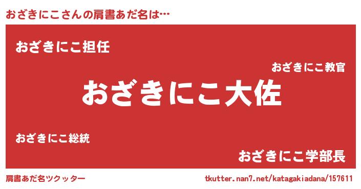 | 男性向けラノベタイトル風あだ名 | 『オザキニコスレイヤー』 |