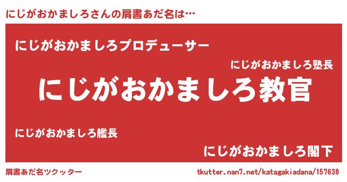 | 男性向けラノベタイトル風あだ名 | 『この素晴らしい世界ににじがおかましろを!』 |