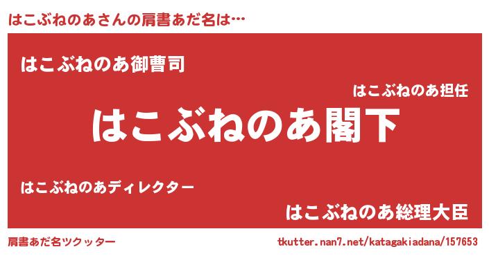 | ヘコむあだ名 | 『はこにー』『なまこ酢』『はこっぺ』 |