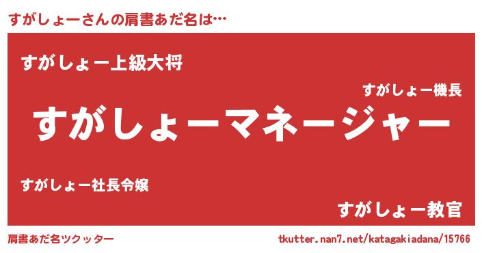 | 男性向けラノベタイトル風あだ名 | 『すがしょーに滅ぼされるだけの簡単なお仕事です』 |