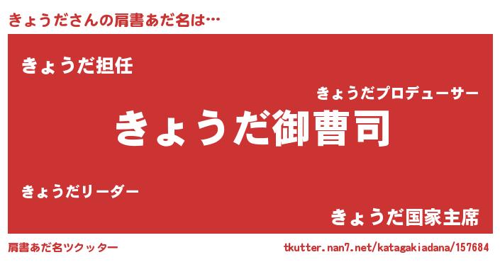 | 男性向けラノベタイトル風あだ名 | 『きょうだの憂鬱』 |