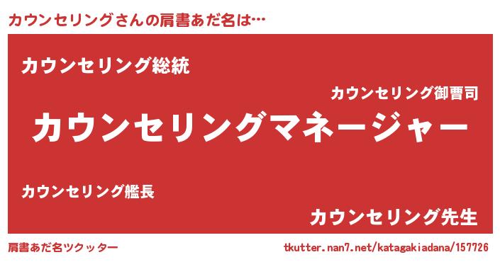 | 男性向けラノベタイトル風あだ名 | 『カウンセリングに滅ぼされるだけの簡単なお仕事です』 |